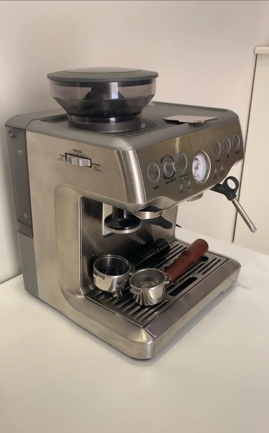مكينة قهوه بريفل شبه جديده استخدام عدة مرات فقط ومع كامل المعدات ومعها قطع اضافيه